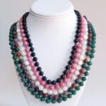 Agate & Citrine necklace Dark Green Aventurine & Tsavorite necklace Mother of Pearl & Blue Chalcedony necklace Rhodonite & Pink Tourmaline necklace Ruby & Onyx necklace