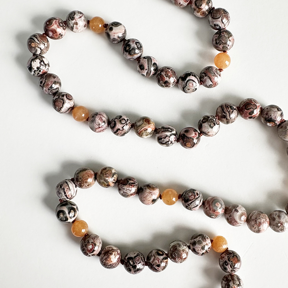 The Leopardskin Jasper & Peach Aventurine combination is based on the numbers 6 and 4. The number 6 promotes self-mastery, to support you in making wise decisions about your desires. The number 4 is a grounding and balancing number, which supports your relationship with your physical body and the Earth.