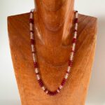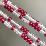 The Ruby-White Beryl design contains an ideal balance of Ruby and White Beryl. Although there’s about half as much Ruby in a Ruby-White Beryl necklace as in a solid Ruby necklace, the presence of White Beryl allows you to benefit much more from this combination necklace than you would from a solid Ruby necklace.